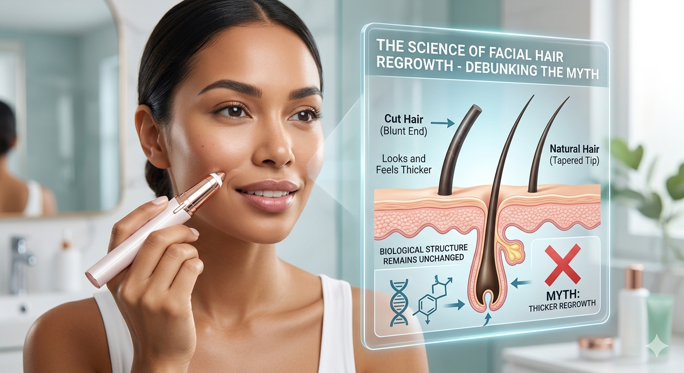 پاسخ کوتاه این است که نه: استفاده از پاک کننده موهای صورت، ساختار بیولوژیکی، ضخامت یا رنگ موهای شما را تغییر نمی دهد. در حالی که بسیاری از افراد پس از برداشتن موهای خود را درشتتر میدانند، این یک توهم فیزیولوژیکی رایج است که ناشی از نحوه برش یا کشیدن مو است. شواهد علمی این را تایید می کند رفع موهای زائد صورت - چه از طریق اصلاح، اپیلاسیون یا کوتاه کردن - فقط بر قسمت مرده مو در بالای سطح پوست تأثیر می گذارد یا فولیکول را به طور موقت حذف می کند، بدون تغییر در DNA یا الگوی رشد مو. فولیکول مو خود